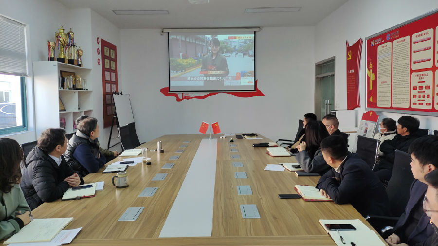 首先是第一议题,支部书记马奕超领学《习近平总书记在中共中央政治局民主生活会上的重要讲话精神》,回顾总结了党纪学习教育成果,强调了严格执行和维护党的纪律,需要各级党委(党组)承担好主体责任,党组织书记要履行好第一责任人职责,其他领导班子成员要履行好“一岗双责”,一级带一级,推动党的纪律建设不断取得新成效;接着观看学习《国家主席习近平发表二〇二五年新年贺词》,深刻领悟总书记在新的一年里提出的工作任务目标和相关要求,为支部2025年工作指明方向;为纪念遵义会议召开90周年,会上观看学习了专题视频《遵义会议-生死攸关的伟大转折》,再次重温了遵义会议精神,深刻感悟共产党人的初心和使命;另外,持续开展党纪学习教育,观看《反腐为了人民》视频,到会党员观看之后一致认为通过惩治蝇贪蚁腐,让群众有安全感,才能让人民群众切身感受到党中央和习近平总书记的关心关爱就在身边,公平正义就在身边;最后,党群工作部宣告了支部2024年度党员积分排名、党费缴纳情况,讨论通过了2025年党费标准。