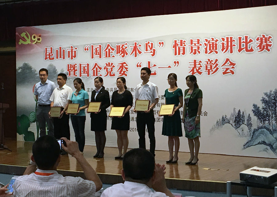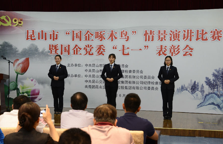 6月27日,昆山市国企党委“国企啄木鸟”情景演讲比赛暨“七一”表彰会在交发集团举行。