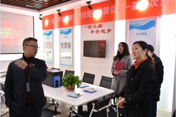 平安驾培支部书记刘毅对支部在贯彻学习十九大精神及开展“八个一”学习活动中的完成情况进行了详细说明,另外陪同金书记共同参观了驾校报名大厅、党员之家、匠心教研室,对于金书记提出的提高十九大学习氛围、规范化党建阵地和支部台账等建议认真记录,承诺将整改落实计划到位,确保党支部“健康体检”发现问题及时整改,永葆支部内生动力。