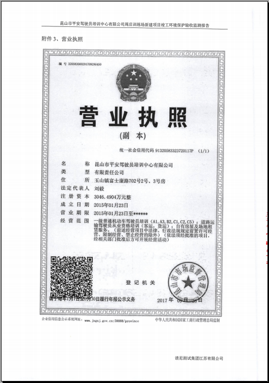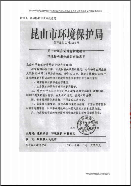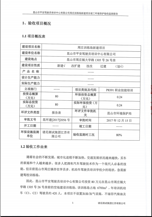 因此,昆山市平安驾驶员培训中心有限公司投资80万元在昆山市周庄镇大学路1305号26号房前的空地建设训练场,该训练场占地6700m2,年培训机动车(C1、C2)驾驶员约420人,本项目不设置加油/加气设施,不储存汽柴油及车用天然气,教练车加油/加气均前往附近加油/加气站,项目内部也不进行汽车维修、保养等,无食堂。