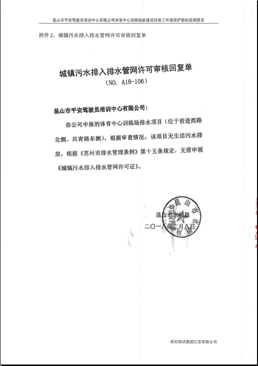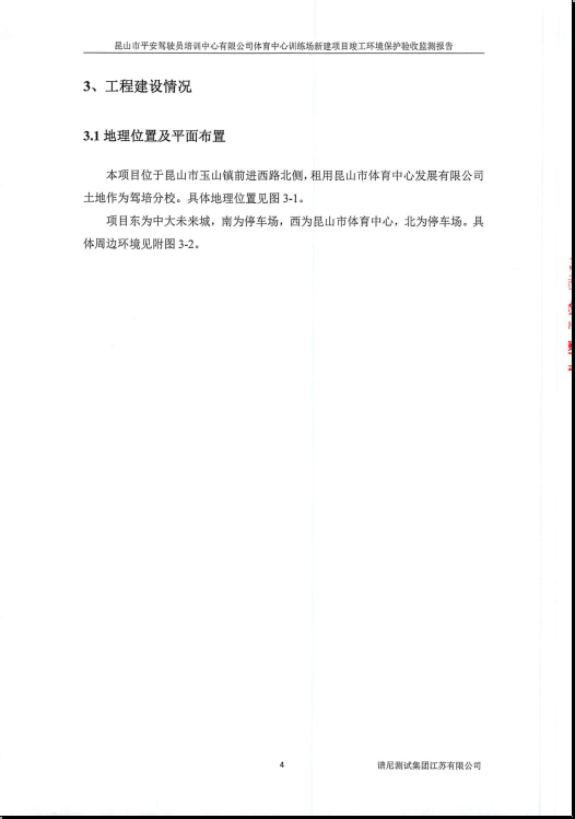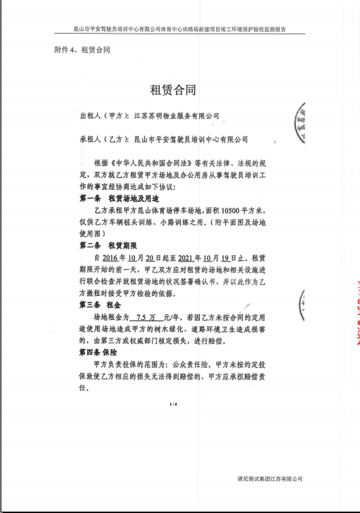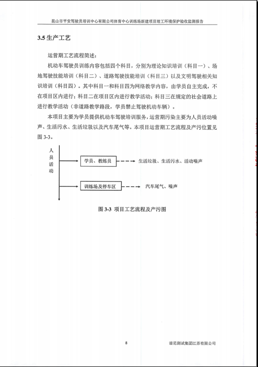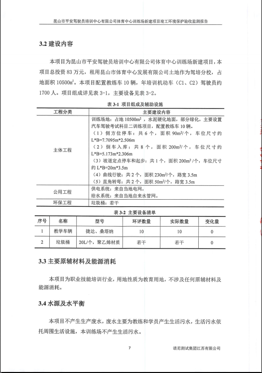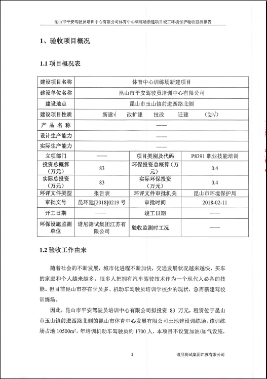 因此,昆山市平安驾驶员培训中心有限公司拟投资83万元,租赁位于昆山市玉山镇前进西路北侧的昆山市体育中心发展有限公司土地建设训练场,该训练场占地10500平方米,年培训机动车驾驶员约1700人,项目内部也不进行汽车维修、保养等,无食堂。
