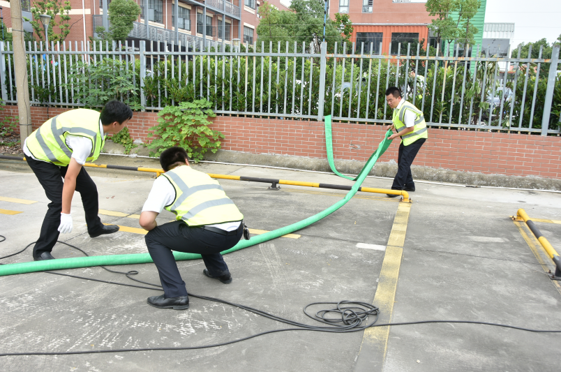 此次防汛防台演练,模拟了公司在遇暴雨恶劣天气,如何防止意外事故(事件)发生,维护保障员工和学员生命财产安全的实战演练。此次防汛防台应急演练包括在发出预警信号时,如何第一时间疏散人员撤离,引导撤离路线,撤离至安全区域,如何为防止配电间雨水灌入,对配电间门口堆叠沙袋以及如何启用水泵对河流进行排水作业。