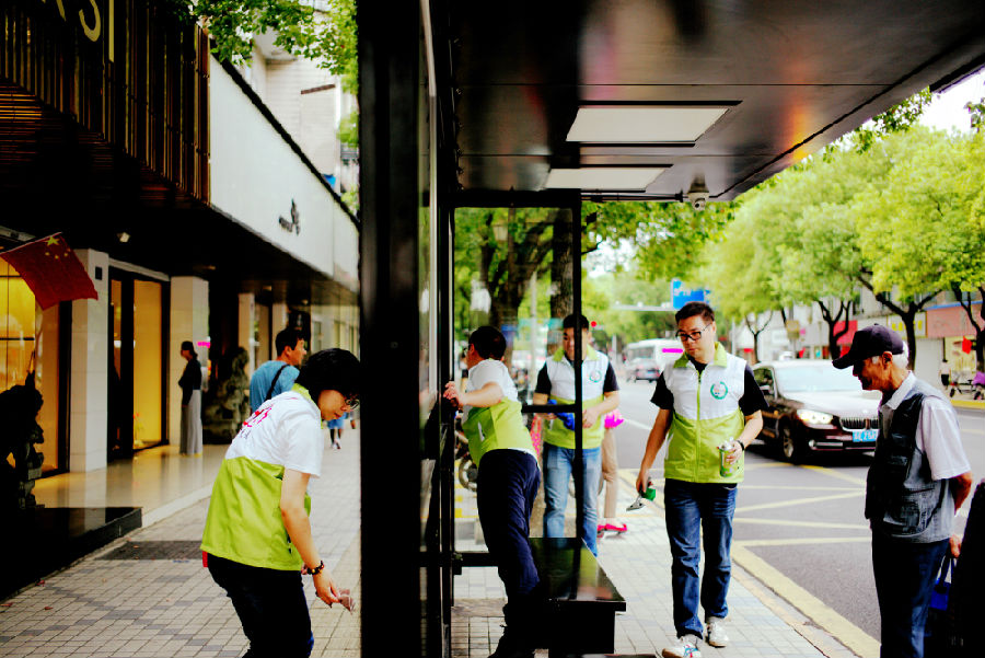 公交站台是城市的“流动窗口”,每天守候无数的乘客。为了让“流动窗口”更加干净、整洁,让城市更加靓丽,志愿者们对公交站台进行了全面清理,大家提着水桶、拿着抹布,弯下腰、踮起脚,仔细擦拭公交站牌上的灰尘,清除乱张贴的小广告。一座座公交站牌光亮如新,得到了候车群众、行人的一致认可和称赞。