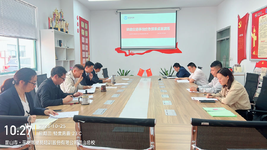 为深入贯彻“安全第一、预防为主、综合治理”的安全理念,及时查找应急预案中存在的问题,进而完善应急预案,熟悉应急预案,提高应急人员在紧急情况下妥善处置事故的能力和应急预案的实用性以及可操作性,10月25日上午10时,365英国上市官网组织开展了道路交通事故应急预案桌面演练。参加人员有公司领导班子,部门负责人以及一线教练员代表,共计10人。